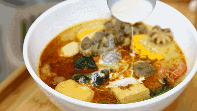 这个顺序不能颠倒,颠倒就不叫正宗吃法了。最后食物都吃完后,才是喝两勺烫(不要全喝了)。这才是正确的麻辣烫吃法。