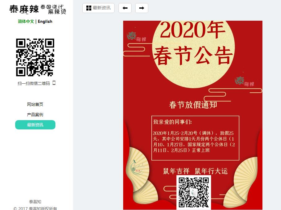 泰麻辣:第一个餐饮行业放假超一个月的带薪企业(疫情前官网发布放假通知)