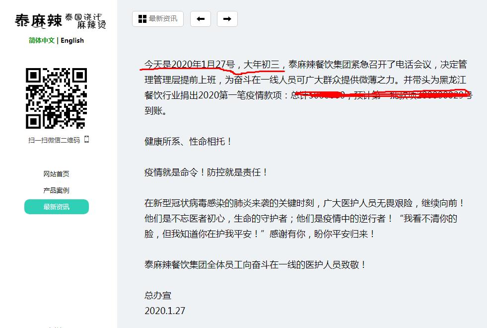 泰麻辣:第一个餐饮行业第一个捐款的小微企业